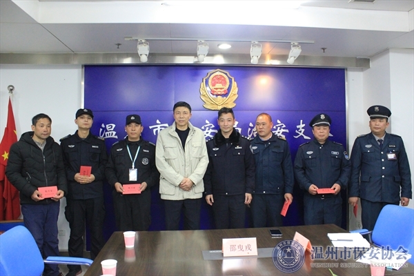 為體現對保安從業(yè)人員的關(guān)心和愛(ài)護,送去“保安之家”大家庭的溫暖,在新春佳節來(lái)臨之際,溫州市保安協(xié)會(huì )會(huì )長(cháng)邵曳戎、秘書(shū)長(cháng)陳一代表協(xié)會(huì )對我公司基層一線(xiàn)保安員劉洪良進(jìn)行年終慰問(wèn),并送上節日問(wèn)候及慰問(wèn)金。 1月30日上午,溫州市保安協(xié)會(huì )在溫州市公安局16樓會(huì )議室召開(kāi)了年終保安服務(wù)工作座談會(huì ),由協(xié)會(huì )對各公司評出的10名基層一線(xiàn)保安隊員一同參加。會(huì )上邵曳戎會(huì )長(cháng)表示,要感謝大家為溫州經(jīng)濟社會(huì )發(fā)展作出的積極貢獻,也要感謝大家在新年來(lái)臨之際仍然堅持的一線(xiàn)工作,更要感謝大家一如既往,任勞任怨,默默無(wú)聞地堅守,值得敬佩。會(huì )后,邵曳戎會(huì )長(cháng)還詳細詢(xún)問(wèn)了我公司保安員劉洪良的家庭情況和生活近況,鼓勵他要樹(shù)立信心,樂(lè )觀(guān)積極地面對生活。 劉洪良對領(lǐng)導的親切的慰問(wèn)表示衷心的感謝,并表示會(huì )繼續發(fā)揚不怕苦不怕累、恪盡職守、勇于奉獻的優(yōu)良作風(fēng),扎扎實(shí)實(shí)做好本職工作,不辜負領(lǐng)導對自己的期望。