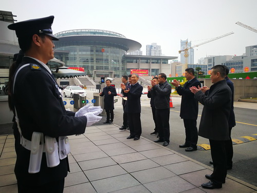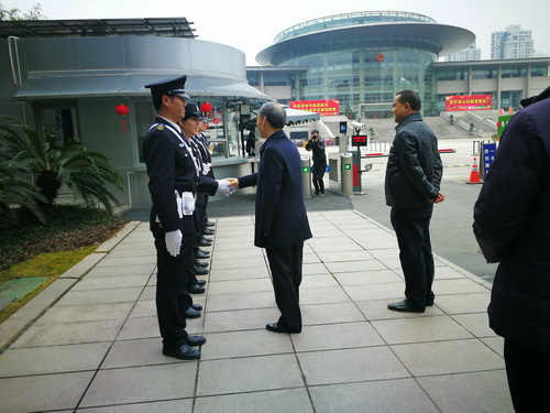 新春佳節來(lái)臨之際,溫州市殷志軍副市長(cháng)在機關(guān)事務(wù)管理局陳向東局長(cháng)、劉立鋒副局長(cháng)等人的陪同下來(lái)到溫州市保安服務(wù)總公司駐市行政中心保安大隊,親切慰問(wèn)了立足一線(xiàn)堅守崗位的保安員,為他們送去了新春的關(guān)懷和祝福。 每到一個(gè)執勤點(diǎn),殷志軍副市長(cháng)與隊員們一一握手,詢(xún)問(wèn)了解他們的工作及生活情況,并感謝大家一年來(lái)付出的辛勤勞動(dòng)。他表示,過(guò)去一年機關(guān)后勤安保服務(wù)人員盡職盡責,堅守崗位,有力地保障了機關(guān)正常有序運行,得到了機關(guān)干部職工的認可和肯定。他代表市委、市政府向堅守在工作崗位的全體后勤安保服務(wù)人員表示衷心的感謝,同時(shí),勉勵大家在新的一年里再接再厲、努力工作,創(chuàng )造新佳績(jì)、再上新臺階。 |