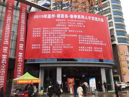 2019年溫州•報喜鳥(niǎo)•春季系列人才交流大會(huì )于2月 24日在溫州市人才市場(chǎng)順利落下帷幕。此次大會(huì )由溫州人力社保局主辦、溫州市人才管理服務(wù)辦公室(溫州市人才市場(chǎng))負責承辦。